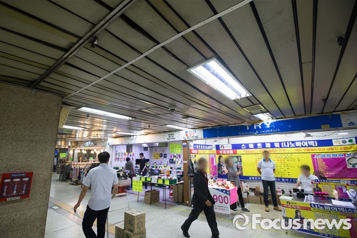 (서울=포커스뉴스) 9일 오전 서울 지하철 종로5가역 지하상가와 출입구를 연결하는 통로의 천장이 훼손되어 있다. 플라스틱 소재로 마감된 천장은 움푹 패어있었으며 휘어지거나 깨진 곳도 많아 위태로워 보인다.