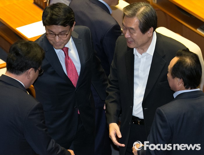 | △ 20대 국회 첫 본회의서 조우한 김무성-윤상현 |