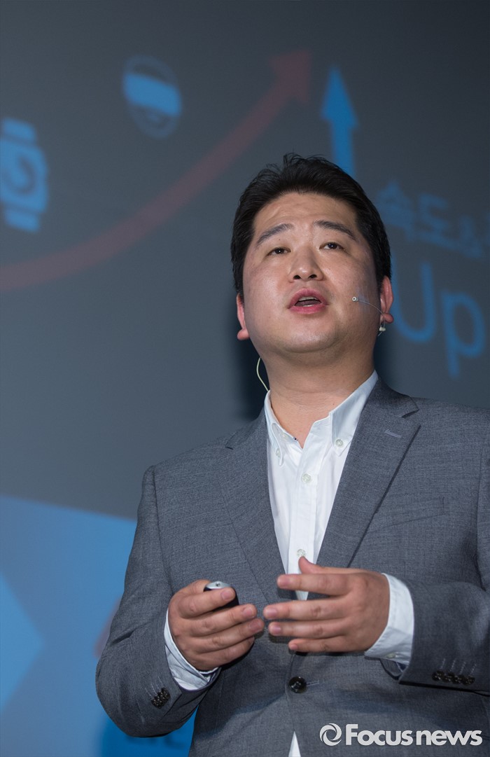 (서울=포커스뉴스) 9일 오전 서울 종로구KT스퀘어에서 열린 KT뮤직 VR서비스 론칭 기자간담회에 참석한 김성욱 KT뮤직 대표가 서비스 관련 발표를 하고 있다.
