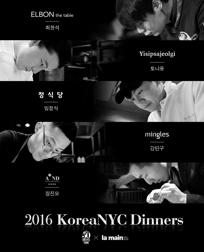 올해 뉴욕에서 개최되는 코리아 엔와이씨 디너스는 월드베스트 50 레스토랑과 국내 푸드 매거진 라망(la main)이 합동으로 주최하는 월드베스트 50 레스토랑의 사전행사다. 글로벌 미식 트렌드 '발효'를 주제로 하는 이번 행사에서 한국의 셰프들은 발효를 활용한 한식의 우수성을 보여줄 예정이다.강민구·유현수·임정식·장진모·최현석 등 스타 셰프 5인방의 '코리아 엔와이씨 디너스(Korea NYC Dinners)' 갈라 디너가 11일 공개된다.<사진제공=W50B KoreaNYC Dinners>