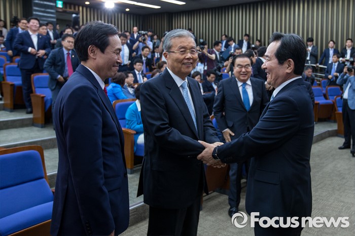 (서울=포커스뉴스) 정세균 더불어민주당 의원이 9일 오전 서울 여의도 국회에서 열린 의원총회에서 20대 국회 전반기 국회의장 후보로 선출된 뒤 김종인 비상대책위 대표와 악수 하고 있다.