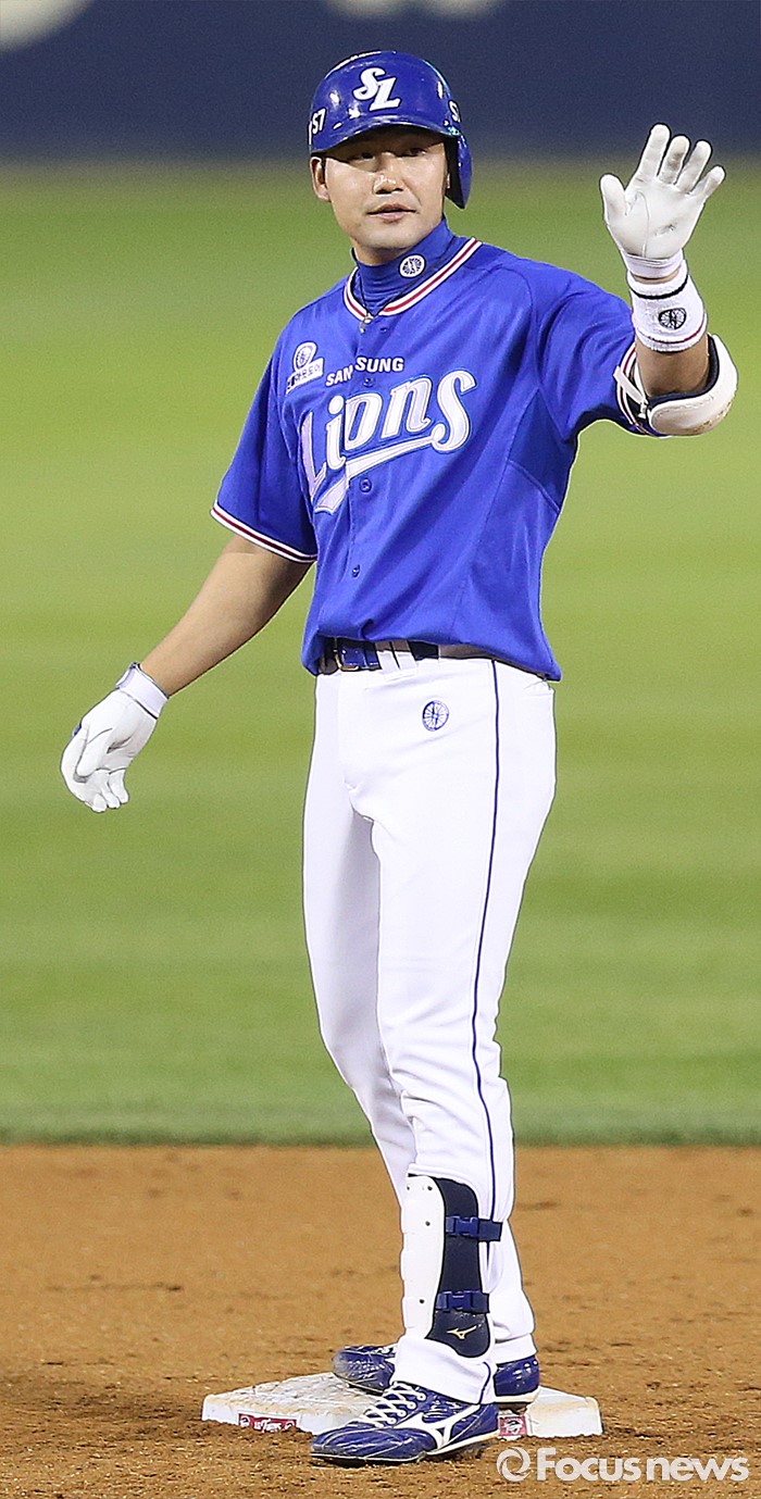 (서울=포커스뉴스) 8일 서울 잠실구장에서 열린 2016 프로야구 삼성-LG 경기 4회초 1사 1,2루에서 삼성 김상수가 1타점 2루타를 치고 2루 베이스를 밟고 있다.