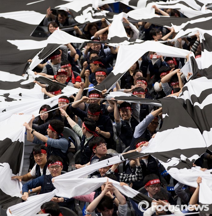 또 “유일호 경제부총리는 정부의 대출회수 책임에 대한 질문에 ‘회수를 위한 노력을 같이 하겠다’고 얼버무렸다”며 “20대 국회 개원 전 공백기를 틈타 국정실패, 경영실패의 책임을 국가경제 부담으로 돌리려는 시도에 대해 정치권은 즉각 저지해야 한다”고 강조했다.(서울=포커스뉴스) 14일 오후 서울 강서구 KBS스포츠월드에서 성과연봉제 저지를 위한 금융공기업지부 합동 대의원대회에 참석한 금융노조 조합원들이 총파업을 결의하는 상징의식으로 천을 찢고 있다. 2016.05.14 김인철 기자