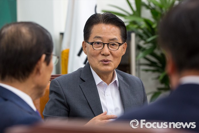 (서울=포커스뉴스) 박지원(가운데) 국민의당 원내대표가 10일 오후 서울 여의도 국회에서 이원종(왼쪽) 대통령비서실장, 김재원 청와대 정무수석과 면담을 하고 있다.