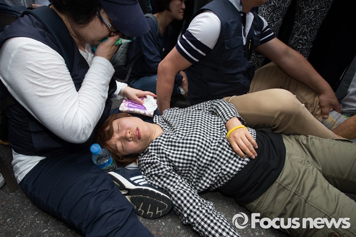 | △ 실신한 노동자 |
