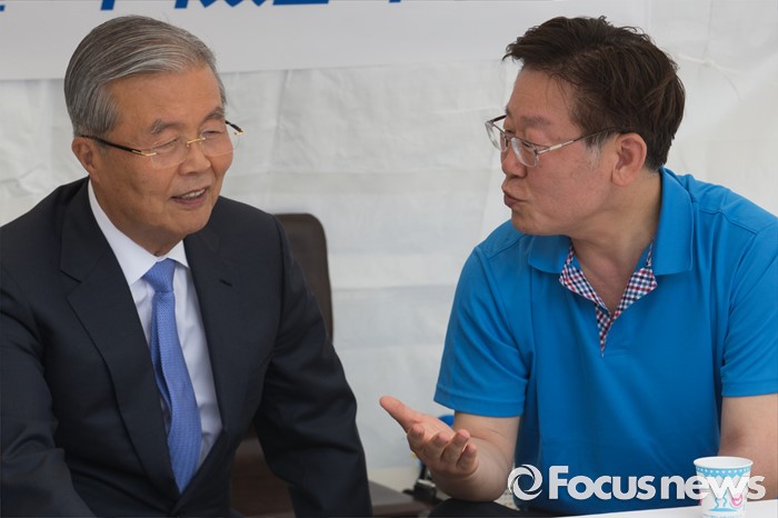 | △ 대화하는 김종인 대표와 이재명 성남시장 |