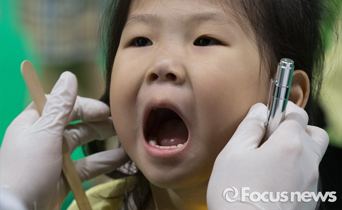 (대전=포커스뉴스) 9일 오전 구강보건의 날을 맞아 대전치과의사회 소속 치과의사들이 대전 서구 대전과학기술대학교에서 어린이집과 유치원 아동 5000여 명을 대상으로 무료 구강검진을 하고 있다.