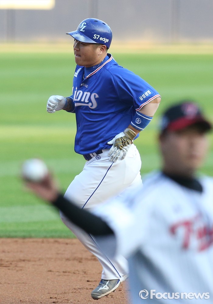 (서울=포커스뉴스) 8일 서울 잠실구장에서 열린 2016 프로야구 삼성-LG 경기 2회초 삼성 선두타자 최형우가 우월 솔로 홈런을 치고 그라운드를 달리고 있다.