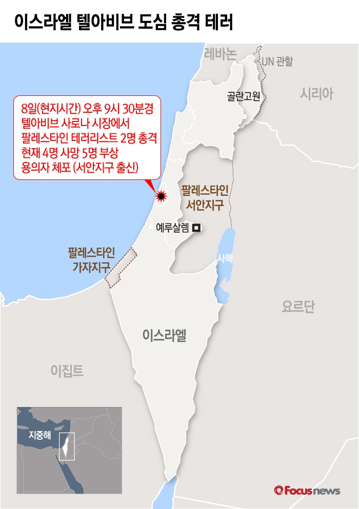 (서울=포커스뉴스) 이스라엘 텔아비브에서 도심에서 8일(이하 현지시간) 총격이 발생해 4명이 사망하는 등 총 9명의 사상자가 났다.