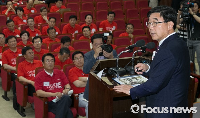 (과천=포커스뉴스) 10일 오전 경기도 과천 국가공무원인재개발원에서 열린 2016 새누리당 정책워크숍에 참석한 이기권 고용노동부 장관이 노동개혁 관련 강연을 하고 있다.
