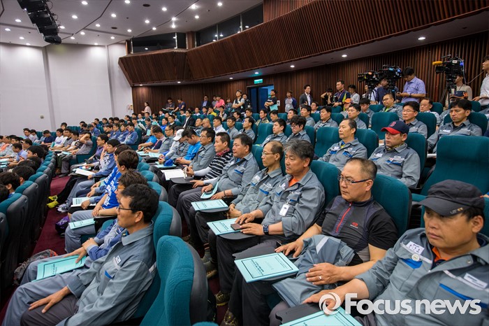 (서울=포커스뉴스) 조선산업 노동자들이 9일 오전 서울 여의도 국회도서관 강당에서 열린 '위기의 조선산업 및 노동자 구조조정 해법 모색 대토론회'에 참석 하고 있다.