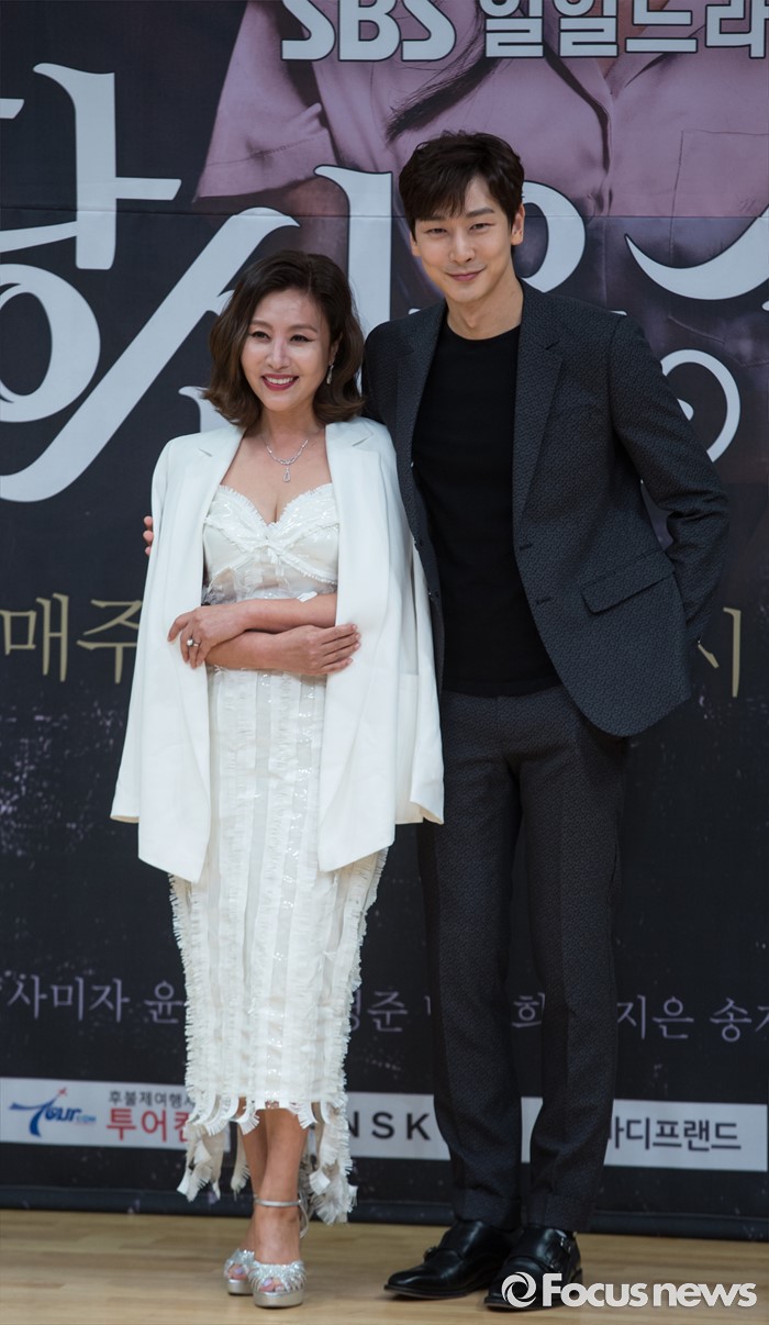 (서울=포커스뉴스) 8일 오후 서울 양천구 SBS 목동사옥에서 열린 SBS 일일드라마 '당신은 선물' 제작발표회에 참석한 배우 최명길(왼쪽)과 심지호가 포토타임을 갖고 있다.