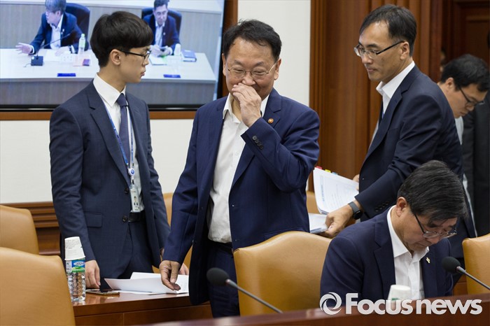 (서울=포커스뉴스) 9일 서울 종로구 정부서울청사에서 열린 제 8차 경제관계장관회의에서 유일호 부총리 겸 기획재정부 장관이 들어서고 있다.