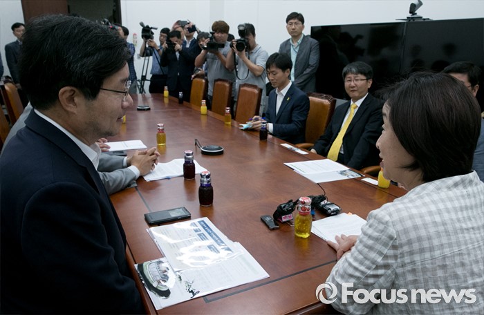 (서울=포커스뉴스) 심상정 정의당 상임대표가 10일 오후 서울 여의도 국회에서 지방재정법 시행령과 관련 경기도 기초단체장들과 만나 간담회를 하고 있다. 이날 간담회에는 염태영 수원시장, 채인석 화성시장, 최성 고양시장 등이 참석했다.