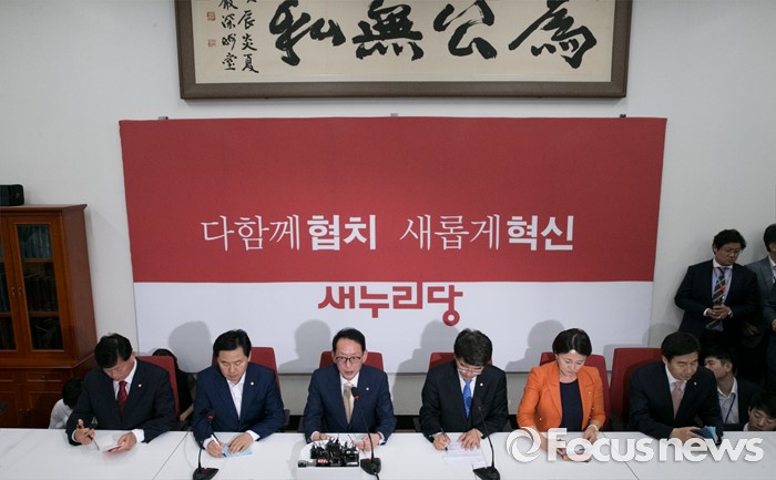 (서울=포커스뉴스) 여야 3당이 20대 국회 원구성에 합의한 8일 오후 서울 여의도 국회 새누리당 원내대표실에서 김도읍 새누리당 원내수석부대표, 박완주 더불어민주당 원내수석부대표, 김관영 국민의당 원내수석부대표가 3당 원내지도부 회동 결과를 발표하고 있다. 왼쪽부터 김명연 새누리당 원내대변인, 김관영 국민의당 원내수석부대표, 김도읍 새누리당 원내수석부대표, 박완주 더불어민주당 원내수석부대표, 이재정 원내대변인, 이용호 국민의당 원내대변인.