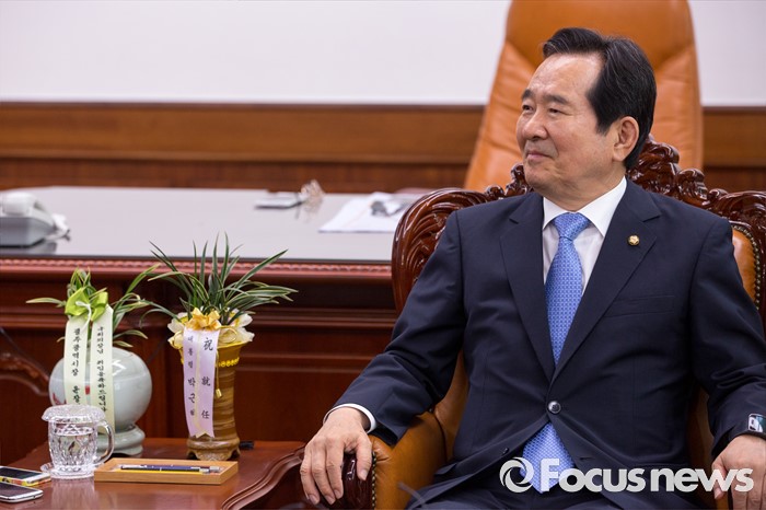(서울=포커스뉴스) 10일 오전 서울 여의도 국회의장실에 이원종 대통령 비서실장이 정세균 국회의장에게 전달한 박근혜 대통령 축하 난이 놓여 있다.