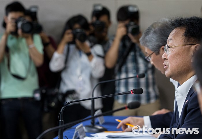 (서울=포커스뉴스) 8일 오전 서울 종로구 정부서울청사에서 유일호 부총리 겸 기획재정부 장관이 구조조정 추진현황 및 계획에 대해 발표하고 있다.