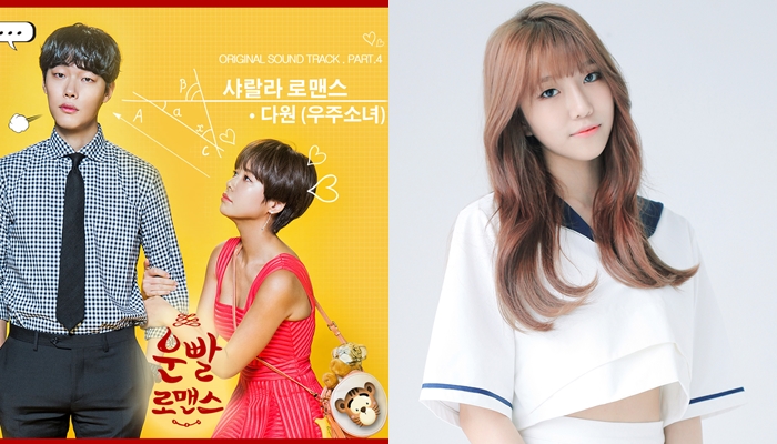 한편 다원이 속한 걸그룹 우주소녀는 현재 음악방송, 예능, 화보를 넘나들며 활발한 방송활동을 지속하고 있다.걸그룹 우주소녀 다원이 부른 MBC 수목미니시리즈 ‘운빨로맨스’의 네 번째 OST ‘샤랄라 로맨스’가 오는 9일 자정 각종 음원 사이트를 통해 공개된다. 사진은 앨범 재킷(좌)-우주소녀 다원. <사진제공=스타쉽엔터테인먼트>
