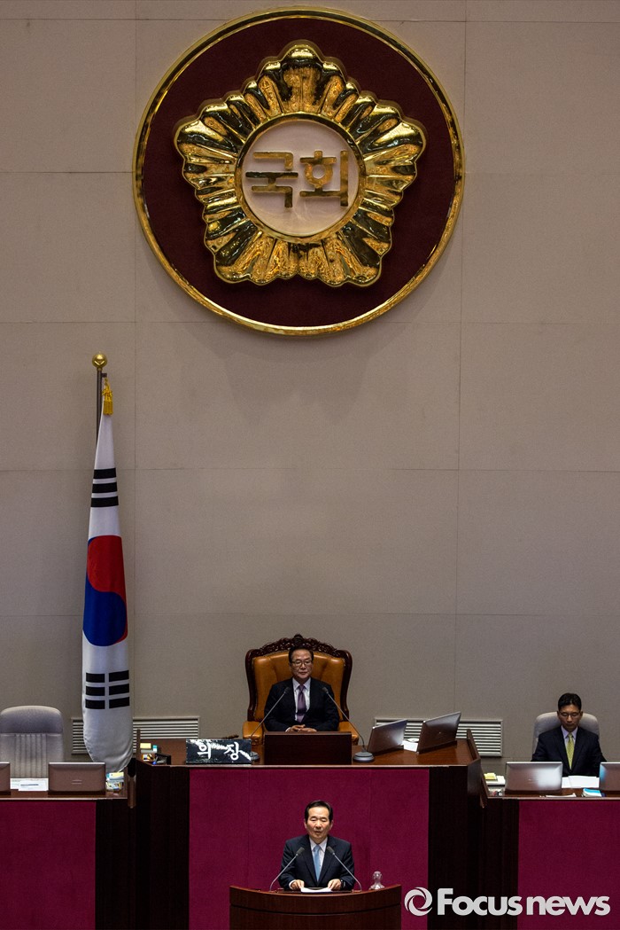 (서울=포커스뉴스) 9일 오후 서울 여의도 국회에서 열린 본회의에서 20대 국회 전반기 국회의장으로 선출된 정세균 더불어민주당 의원이 수락 연설을 하고 있다.