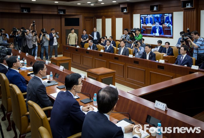 (서울=포커스뉴스) 8일 오전 서울 종로구 정부서울청사에서 열린 구조조정 관계장관회의에 참석한 유일호 경제부총리 겸 기획재정부 장관이 모두발언 하고 있다.
