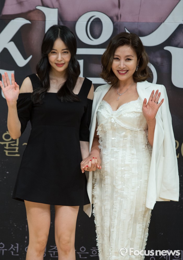 (서울=포커스뉴스) 8일 오후 서울 양천구 SBS 목동사옥에서 열린 SBS 일일드라마 '당신은 선물' 제작발표회에 참석한 배우 허이재(왼쪽)와 최명길이 포토타임을 갖고 있다.