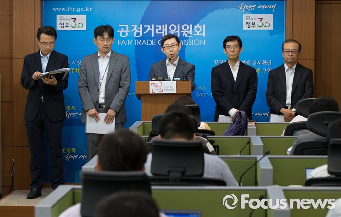 (세종=포커스뉴스) 신영선 공정거래위원회 사무처장이 8일 오전 세종시 정부세종청사 공정위 기자실에서 대기업집단 지정제도 개선방안에 대한 브리핑을 하고 있다. 왼쪽부터 박춘호 기획재정부 법인세제과장, 이병원 기획재정부 기업환경과장, 신영선 사무총장, 김병근 중소기업청 중소기업정책국장, 원동진 산업통상자원부 산업정책관.