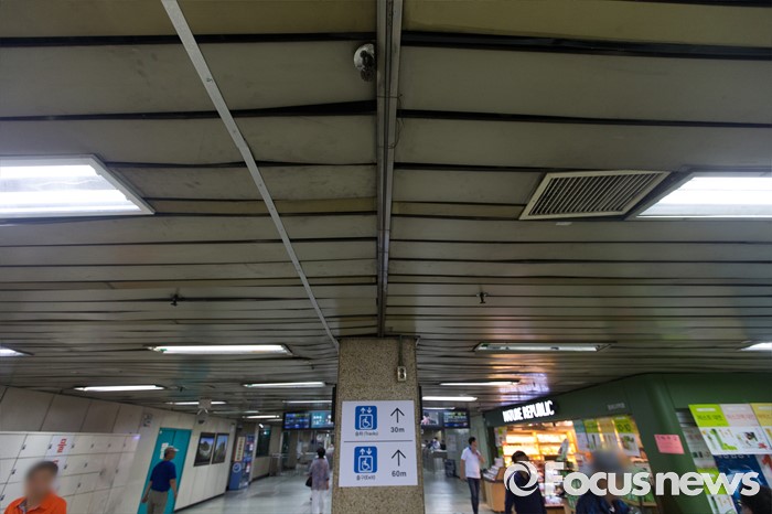 (서울=포커스뉴스) 9일 오전 서울 지하철 종로5가역 지하상가와 출입구를 연결하는 통로의 천장이 훼손되어 있다. 플라스틱 소재로 마감된 천장은 움푹 패어있었으며 휘어지거나 깨진 곳도 많아 위태로워 보인다.
