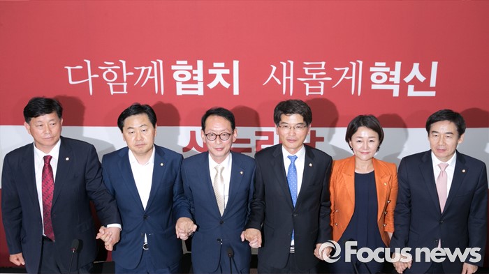 | △ 원내대표들 없이 포즈 취한 3당 원내수석과 원내대변인들 |