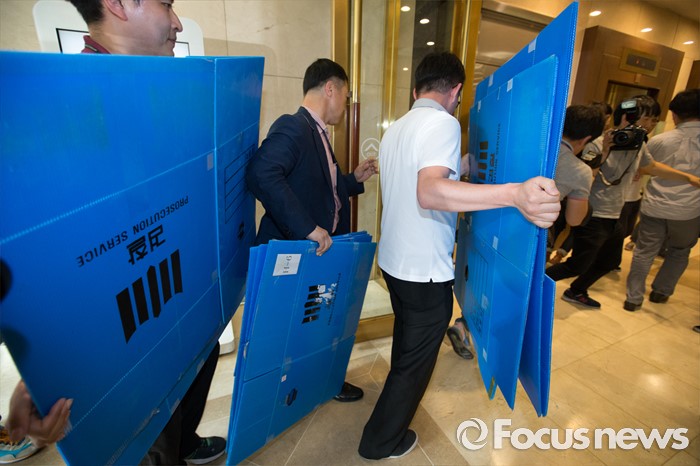 | △ 롯데그룹 압수수색, 박스들고 가는 검찰 수사관 |