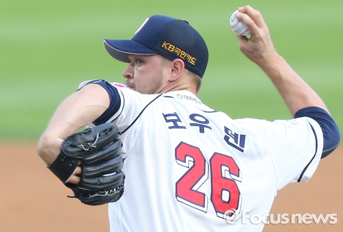 (서울=포커스뉴스) 10일 서울 잠실구장에서 열린 2016프로야구 롯데-두산 경기에서 1회초 두산 선발투수 보우덴이 투구하고 있다.