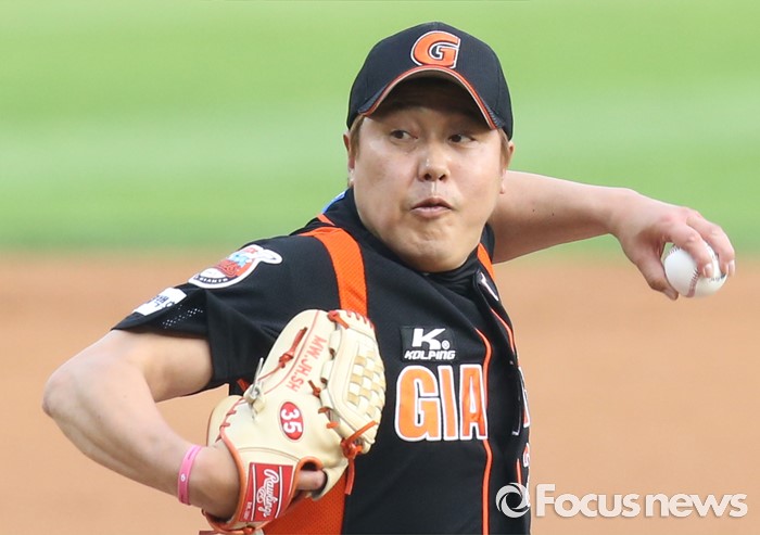 (서울=포커스뉴스) 10일 서울 잠실구장에서 열린 2016프로야구 롯데-두산 경기에서 1회말 롯데 선발투수 이명우가 투구하고 있다.