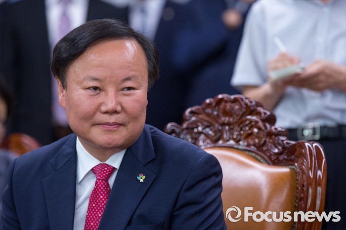 (과천=포커스뉴스) 김재원 신임 청와대 정무수석 비서관이 10일 새누리당 정책워크숍을 방문했다.