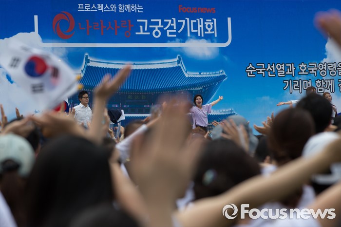 (서울=포커스뉴스) 12일 오전 서울 중구 서울시청 광장에서 열린 '제7회 나라사랑 고궁걷기 대회'에 시민들이 참가하고 있다.