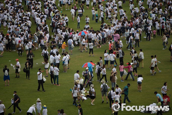 (서울=포커스뉴스) 12일 오전 서울 중구 서울시청 광장에서 열린 제 7회 나라사랑 고궁걷기 대회에 시민들이 참가하고 있다.