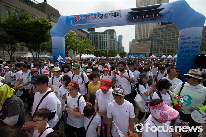 (서울=포커스뉴스) 12일 오전 서울 중구 서울시청 광장에서 열린 '제7회 나라사랑 고궁걷기 대회'에 참가한 시민들이 출발하고 있다.