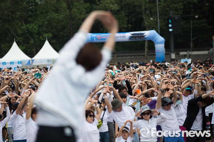 (서울=포커스뉴스) 12일 오전 서울 중구 서울시청 광장에서 열린 제 7회 나라사랑 고궁걷기 대회에 참가한 시민들이 출발 전 준비운동을 하고 있다.