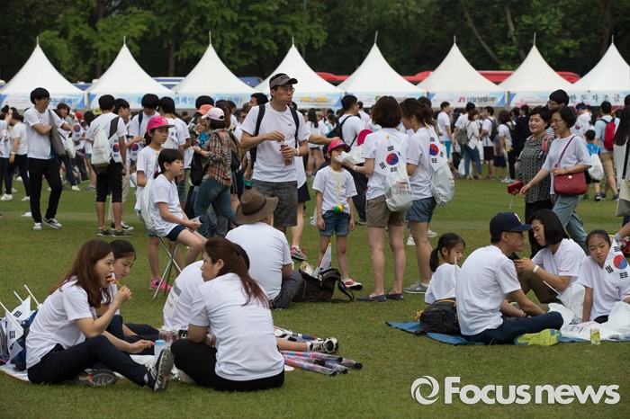 (서울=포커스뉴스) 12일 오전 서울 중구 서울시청 광장에서 열린 제 7회 나라사랑 고궁걷기 대회에 시민들이 참가하고 있다.