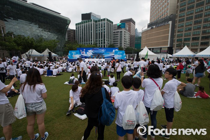 (서울=포커스뉴스) 12일 오전 서울 중구 서울시청 광장에서 열린 제 7회 나라사랑 고궁걷기 대회에 시민들이 참가하고 있다.