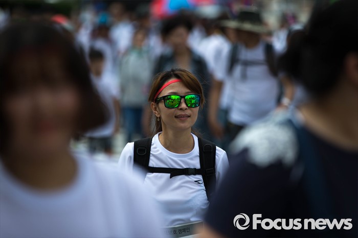 (서울=포커스뉴스) 12일 오전 서울 중구 서울시청 광장에서 열린 '제7회 나라사랑 고궁걷기 대회'에 참가한 시민들이 경복궁을 향해 걷고 있다.