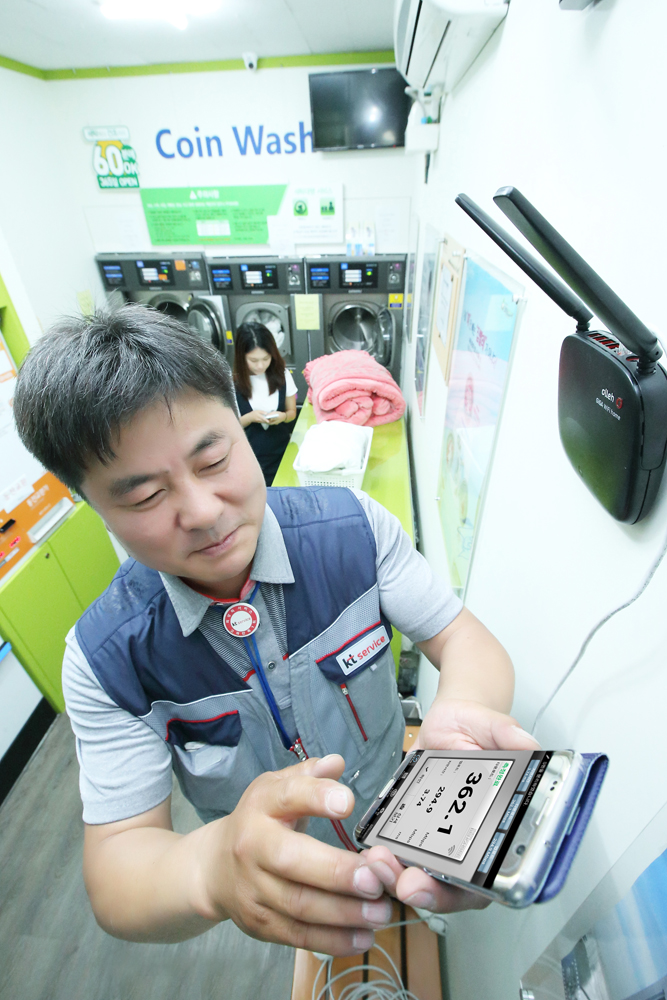 원성운 KT 인터넷사업담당 상무는 “KT는 기가 인터넷 160만, 기가 와이파이 홈 100만 고객 달성이란 금자탑을 세우며 ‘기가는 KT’란 고객 인식을 만들어 나가고 있다”면서 “앞으로도 가정의 통신 환경을 책임지는 선도 사업자로서의 역할은 물론, 고객의 가계 통신비 절감에도 기여하겠다”고 밝혔다.서울 종로구 무악현대아파트의 ‘크린토피아’에서 KT 직원이 ‘기가 와이파이 홈’ 100만 번째 가입자의 공유기를 설치하고 있다.<사진제공=KT>