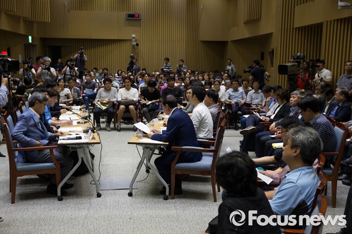 (서울=포커스뉴스) 12일 오후 서울 중구 서울시청에서 박원순 서울시장과 전문가 패널, 시민들이 '구의역 사고 해결을 위한 시민토론회'에 참석해 발표 및 토론을 하고 있다.