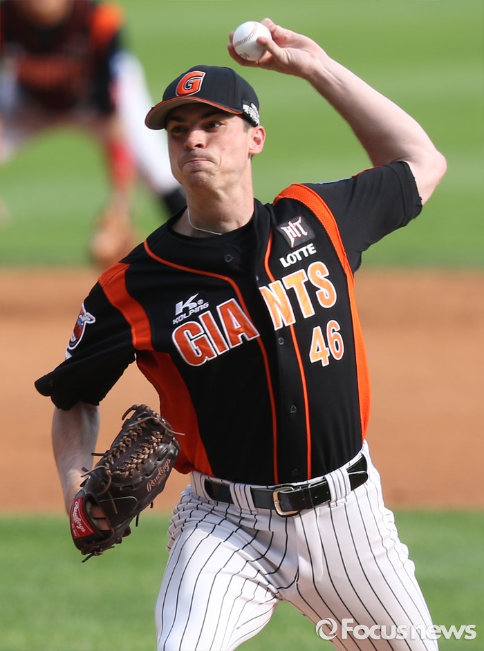 (서울=포커스뉴스) 12일 서울 잠실구장에서 열린 2016프로야구 롯데-두산 경기에서 1회말 롯데 선발투수 레일리가 투구하고 있다.