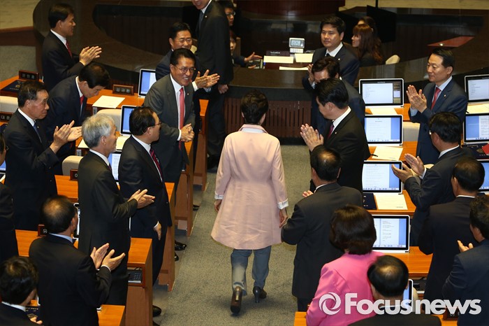 (서울=포커스뉴스) 13일 오전 서울 여의도 국회에서 열린 20대 국회 개원식에 박근혜 대통령이 연설을 위해 입장하고 있다.