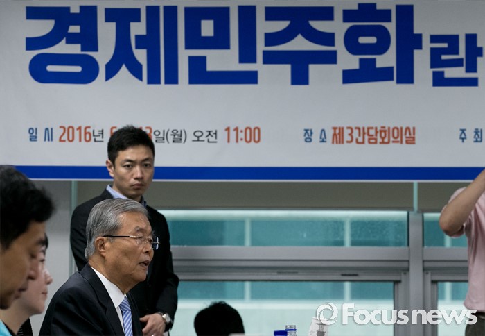(서울=포커스뉴스) 김종인 더불어민주당 비대위 대표가 13일 오전 서울 여의도 국회 의원회관에서 열린 '경제민주화란 무엇인가?' 간담회에 참석해 인사말을 하고 있다.