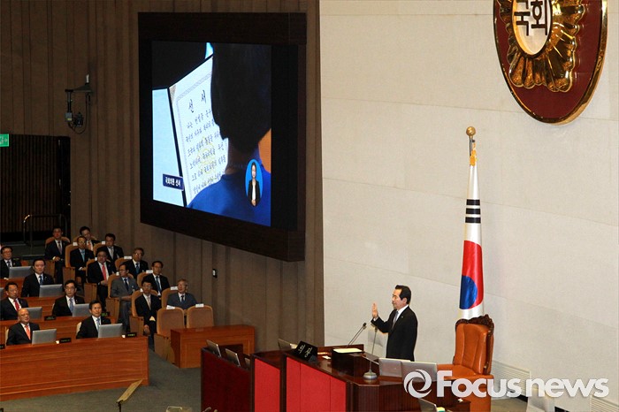 (서울=포커스뉴스) 13일 오전 서울 여의도 국회에서 열린 20대 국회 개원식에 참석한 의원들이 선서를 하고 있다.