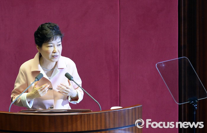 (서울=포커스뉴스) 박근혜 대통령이 13일 오전 서울 여의도 국회에서 열린 20대 국회 개원식에 참석해 연설을 하고 있다.