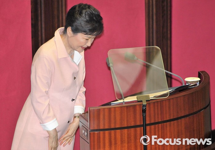 (서울=포커스뉴스) 박근혜 대통령이 13일 오전 서울 여의도 국회에서 열린 20대 국회 개원식에 참석해 연설을 마친 뒤 인사하고 있다.