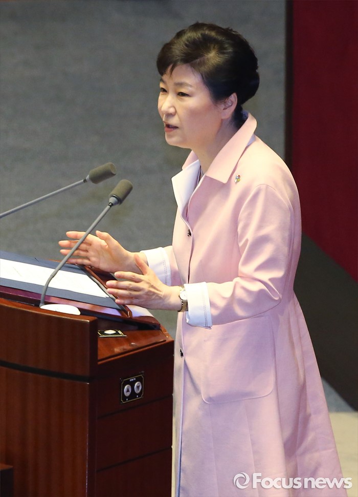 (서울=포커스뉴스) 박근혜 대통령이 13일 오전 서울 여의도 국회에서 열린 20대 국회 개원식에 참석해 연설을 하고 있다.