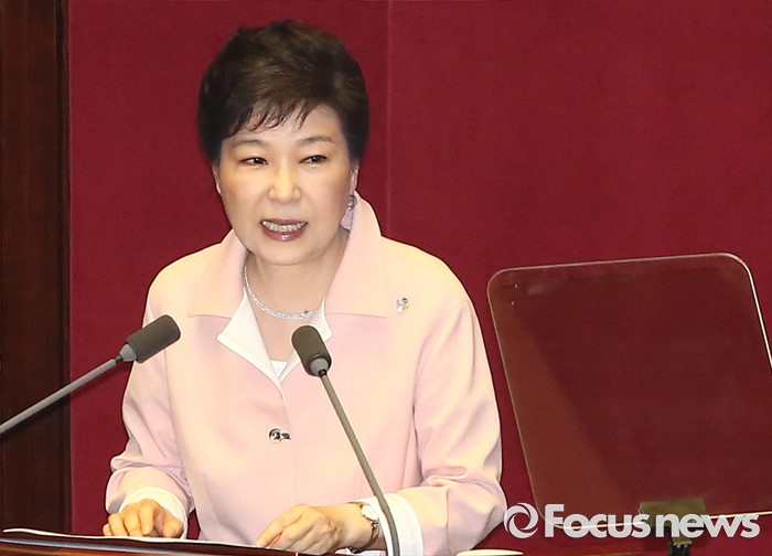 (서울=포커스뉴스) 박근혜 대통령이 13일 오전 서울 여의도 국회에서 열린 20대 국회 개원식에 참석해 연설을 하고 있다.