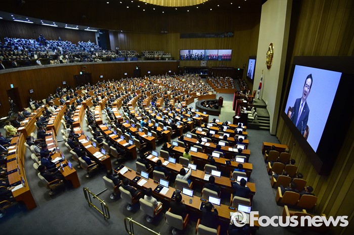 (서울=포커스뉴스) 13일 오전 서울 여의도 국회에서 열린 20대 국회 개원식에 참석한 정세균 국회의장이 개원사를 하고 있다.